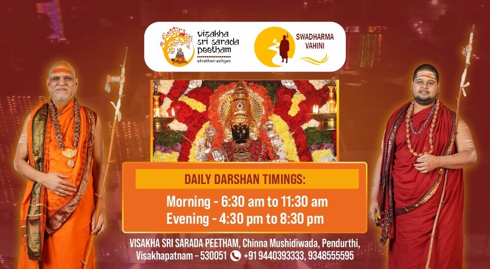 విశాఖ శ్రీ శారదాపీఠం ఆదిశంకరాచార్య సాంప్రదాయ అద్వైత పీఠం. తపో పీఠం. జ్ఞాన పీఠం. సిద్ధి పీఠం. సమాజంలో కాలానుగుణంగా ధర్మం నిర్వర్తించబడుతూ ఉండాలని తపిస్తుంది విశాఖ శ్రీ శారదాపీఠం. సనాతన ధర్మాన్ని ఆధునిక కాలానికి పునర్నిర్వర్తించే మహత్తర కార్యం భారతదేశంలో ఎవరైనా చేస్తున్నారంటే..అది విశాఖ శ్రీ శారదా పీఠాధిపతులు శ్రీశ్రీశ్రీ స్వరూపానందేంద్ర సరస్వతీ మహాస్వామి, శ్రీ స్వాత్మానందేంద్ర సరస్వతీ స్వామి వారే. నిత్య నూతనమైన మానవ సమూహాలకు దిశా దర్శనం చేయిస్తున్న భారతీయ ధర్మం గంగా స్రోతస్వినిగా నిరంతరం ప్రవహింపజేయడానికి విశాఖ శ్రీ శారదాపీఠం అహర్నిశలు కృషి చేస్తోంది. భారతీయ తత్వాన్ని, భారతీయ సత్వాన్ని నేల నలుచెరగులా అనుక్షణం ప్రబోధం చేసేటటువంటి గొప్ప కార్యాన్ని పీఠం నిర్వహిస్తోంది.